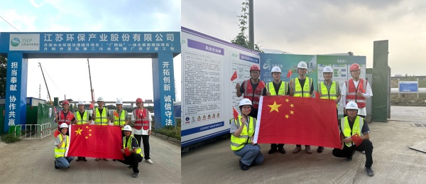 禮贊新中國闊步新征程丨江蘇環(huán)保產(chǎn)業(yè)股份有限公司一線員工與國旗同框,致敬祖國76華誕